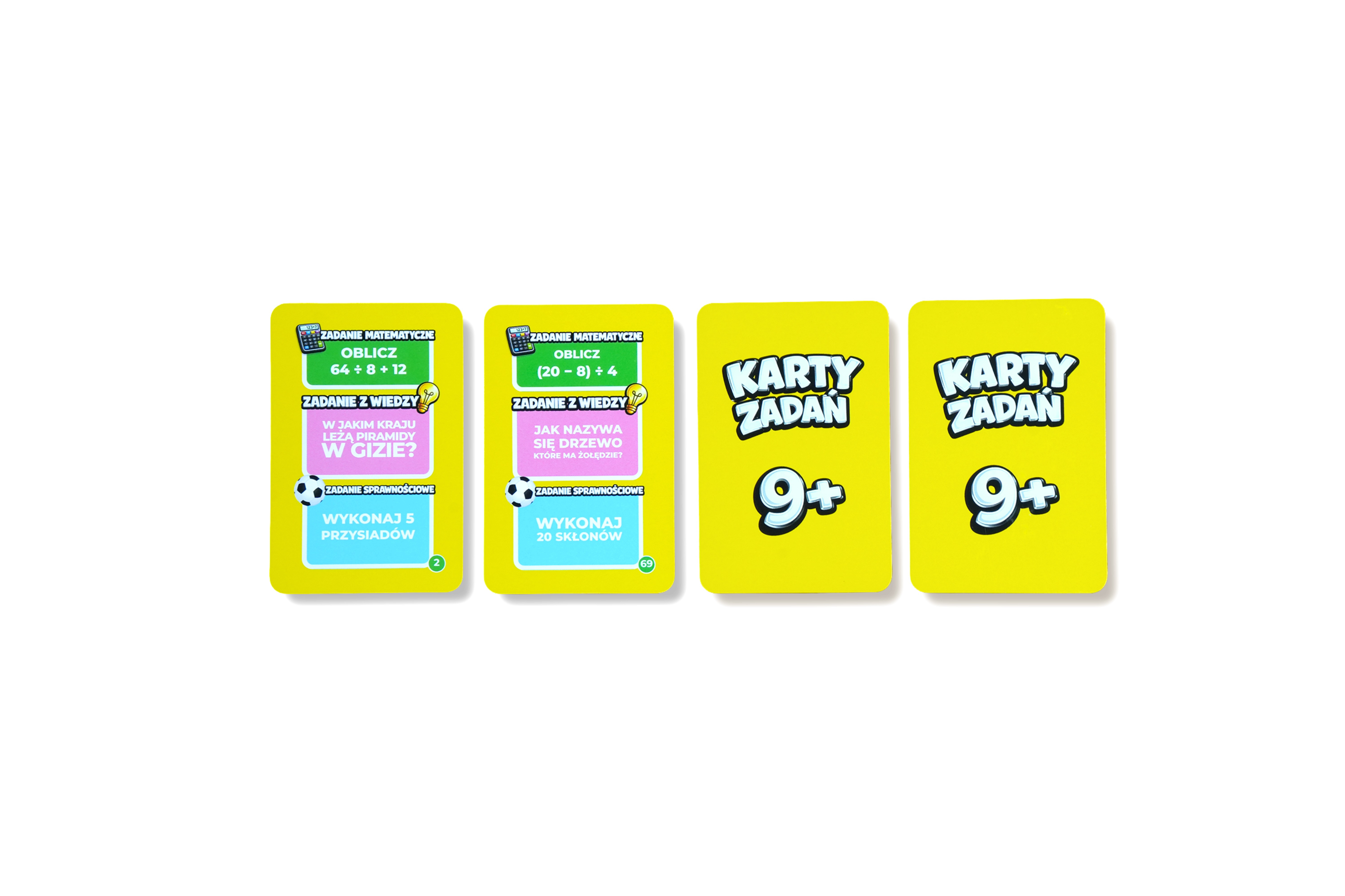 - karty z pytaniami (2 poziomy: 6+ i 9+)