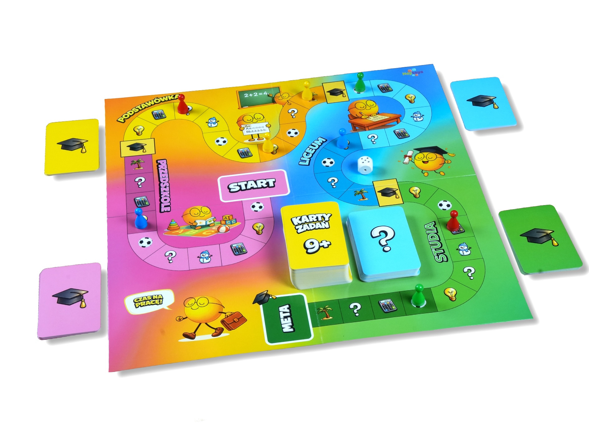 Każdy etap to nowe wyzwania, pytania i sytuacje, które odzwierciedlają prawdziwe doświadczenia dziecka. Po drodze pojawiają się sprawdziany wiedzy, zadania matematyczne, aktywności ruchowe, ale też chwile wytchnienia, jak ferie czy wakacje. Nie brakuje również niespodziewanych zwrotów akcji, które potrafią całkowicie zmienić przebieg rozgrywki.