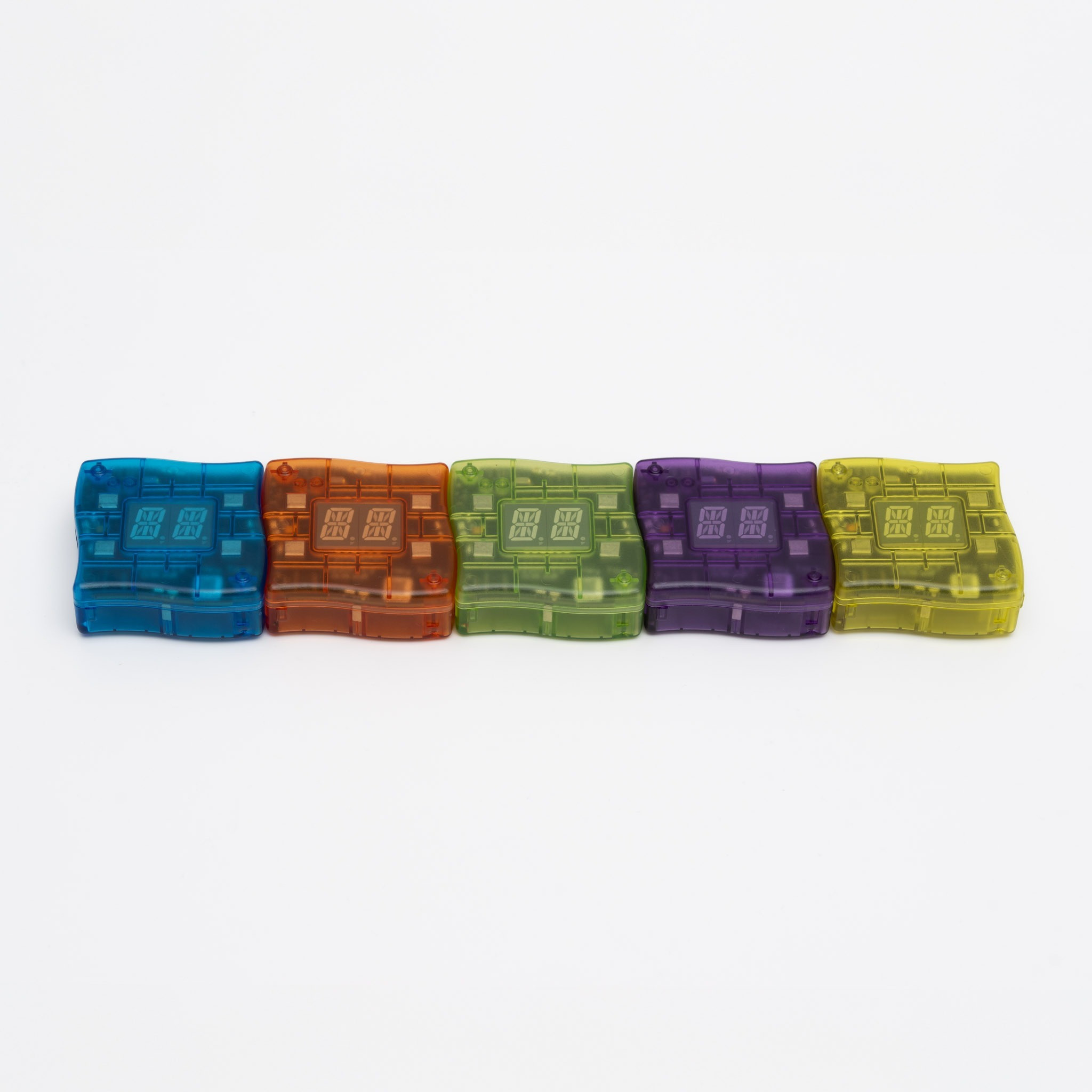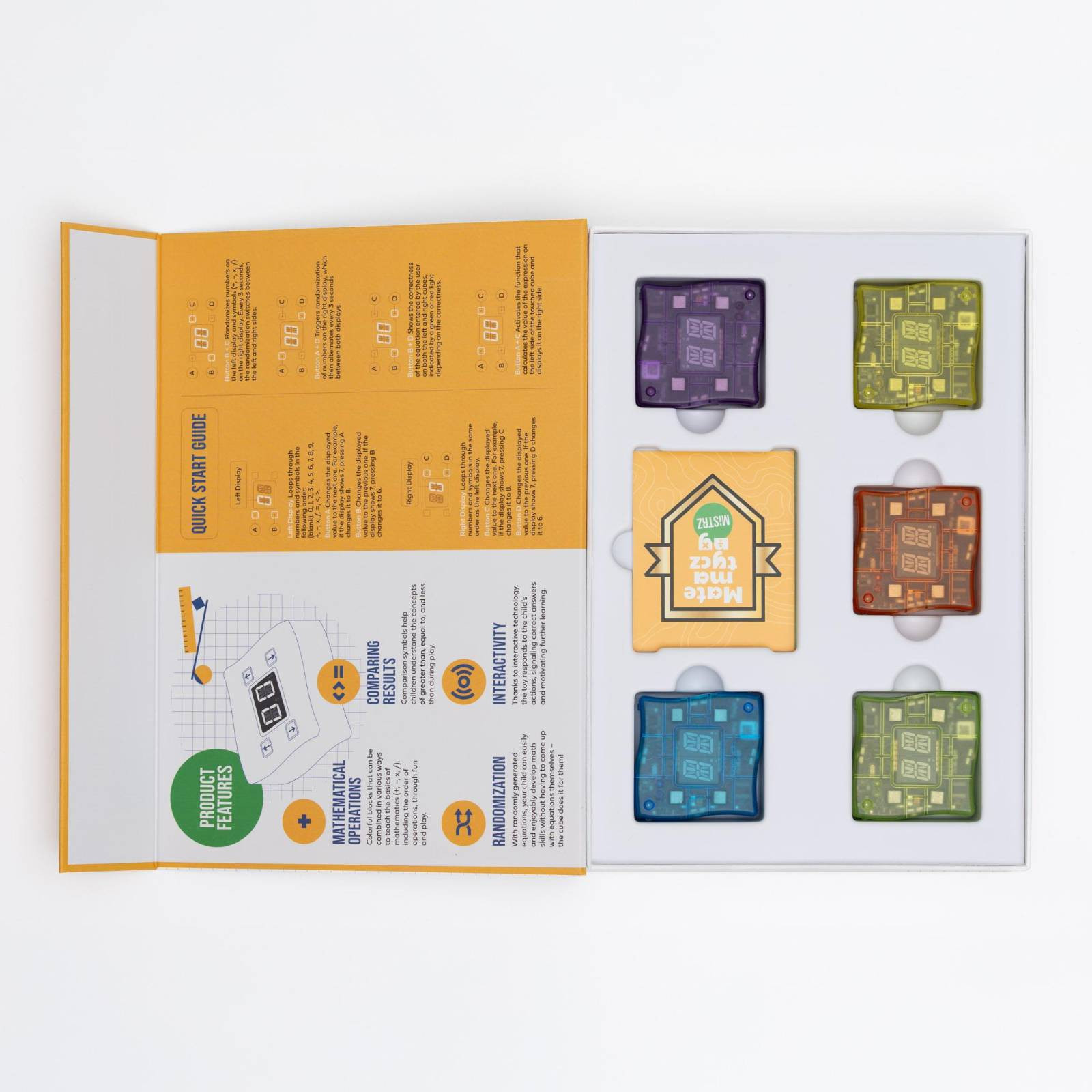 • Kolorowe klocki z wbudowanymi wyświetlaczami pokazującymi cyfry i znaki matematyczne.