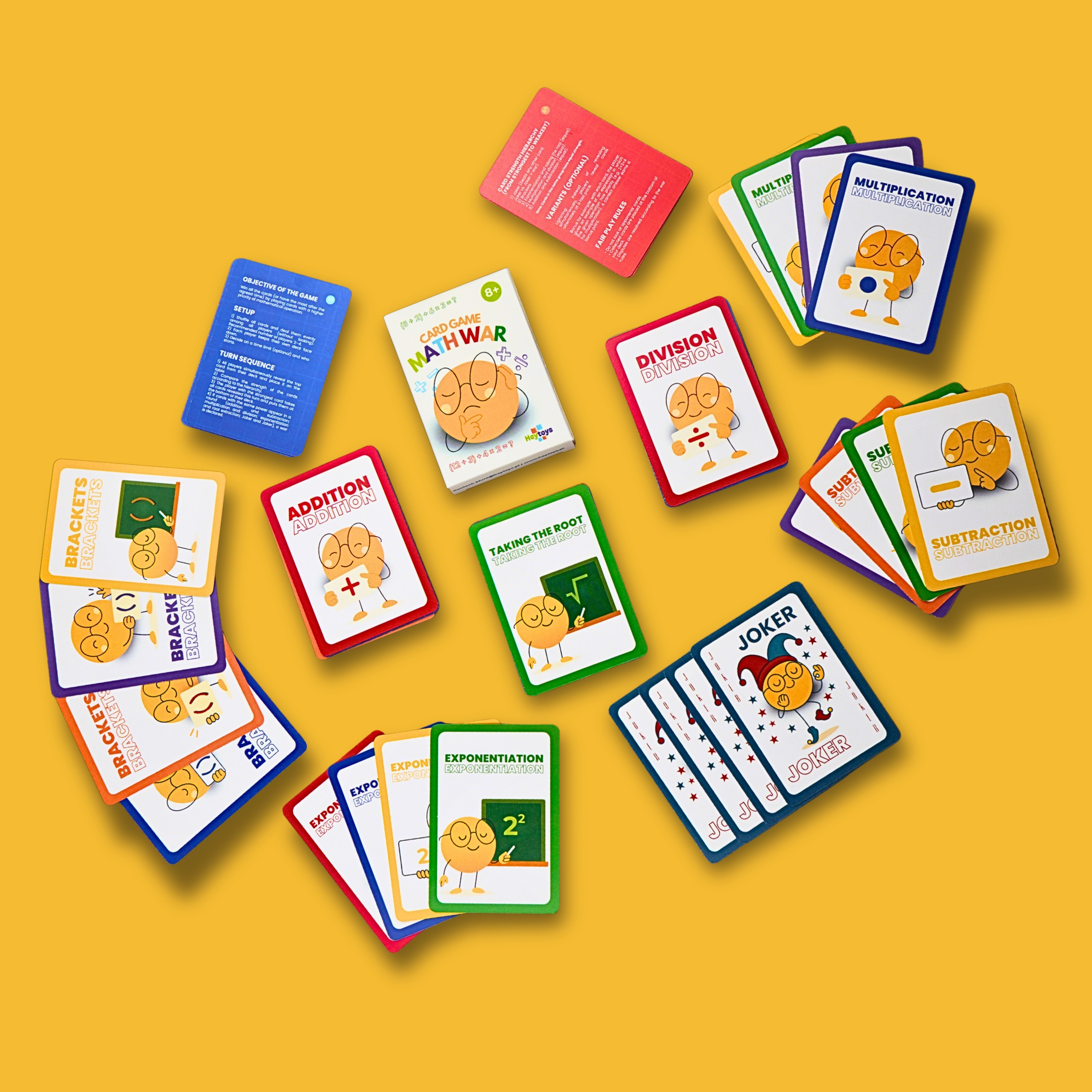 Wojna Matematyczna to szybka, emocjonująca gra karciana, w której liczy się refleks, spryt i dobra znajomość kolejności działań matematycznych. Odkrywaj karty, porównuj ich siłę i zdobywaj całą talię — ale uważaj, bo remis oznacza Wojnę! Ta gra to dynamiczny pojedynek na potęgi, pierwiastki, nawiasy i działania, które trzeba ocenić w ułamku sekundy. Ćwiczy logiczne myślenie, koncentrację, tempo pracy i pewność w liczeniu. Idealna dla dzieci, młodzieży i dorosłych, którzy chcą wzmocnić matematyczne umiejętności w świetnej, pełnej rywalizacji zabawie. Doskonała do domu, szkoły i zajęć rozwijających kompetencje matematyczne.